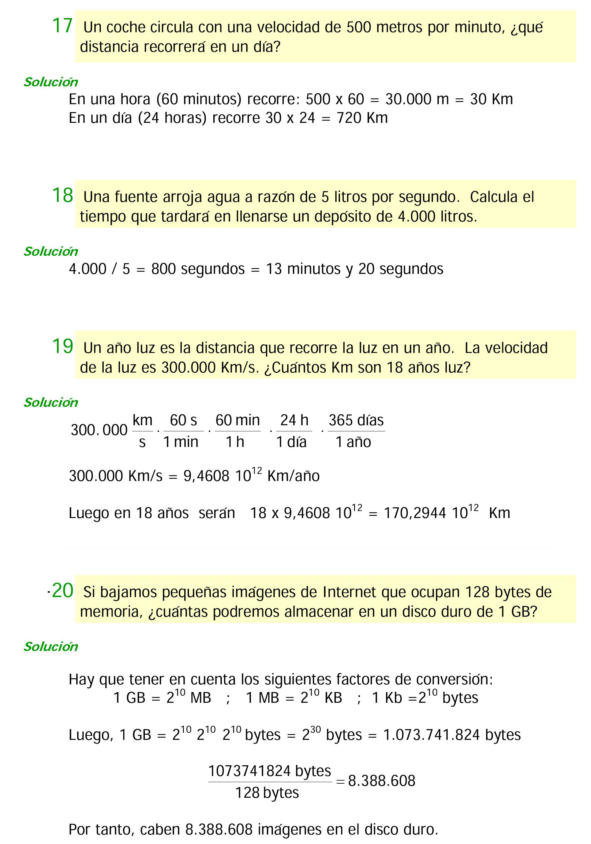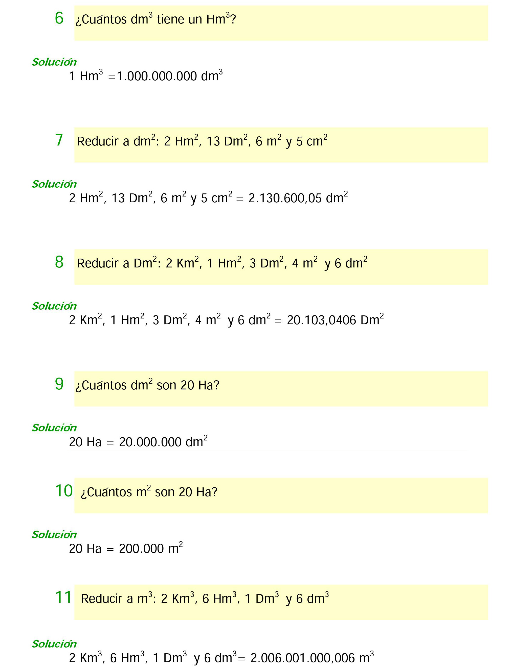 Cada unidad vale 100 más que la anterior. Por lo tanto, el problema de convertir unas unidades en otras se reduce a multiplicar o dividir por la unidad seguida de tantas parejas de ceros como lugares haya entre ellas.